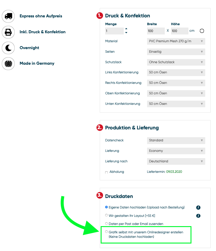 „Grafik selbst mit unserem Onlinedesigner erstellen" und klicken auf "Jetzt online gestalten"